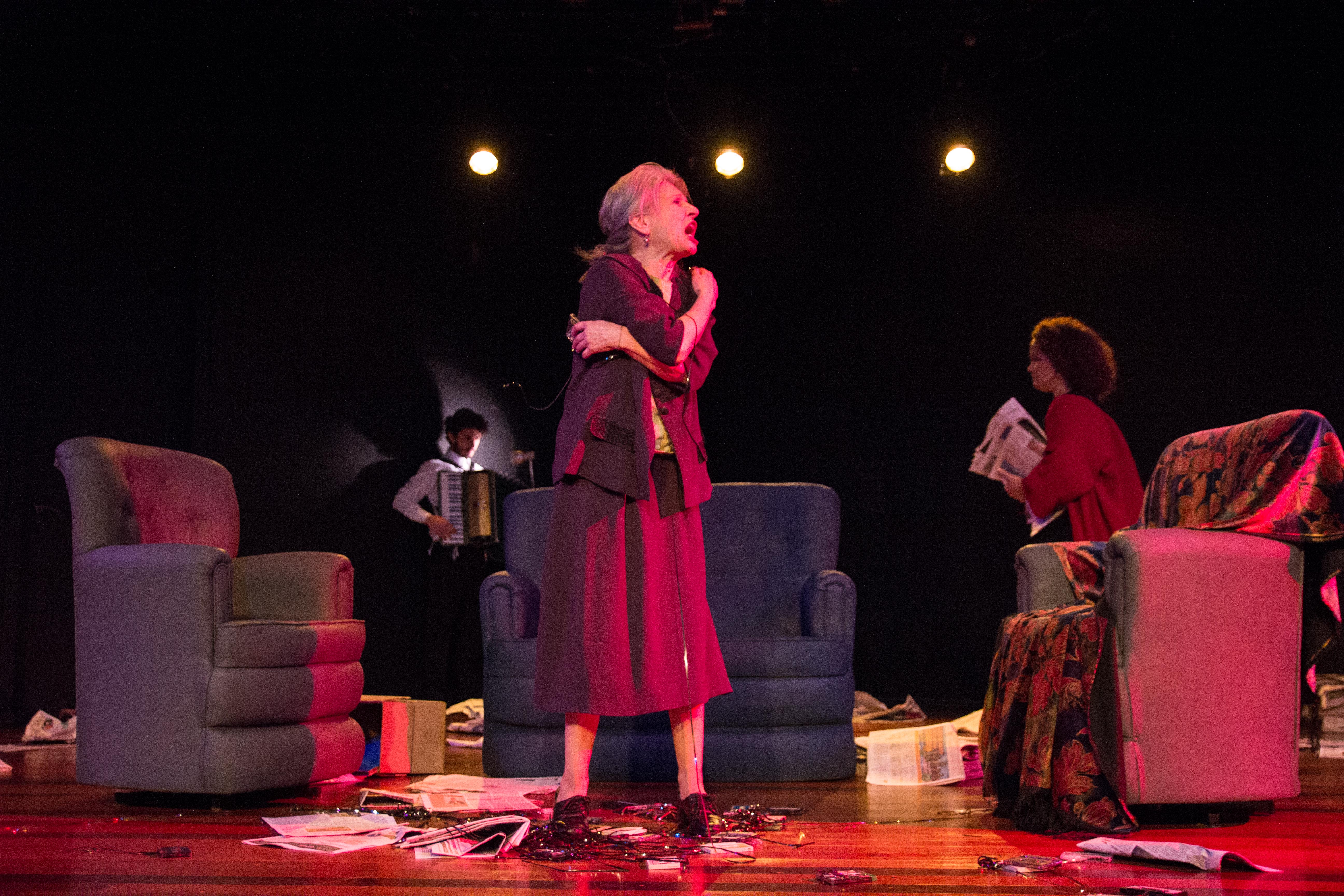 puristisch inszeniert. Auf der Bühne sind die notwendigsten Möbel, ansonsten konzentriert die brasilianische Erstaufführung sich auf Marianna Salzmanns Dialoge. Auf