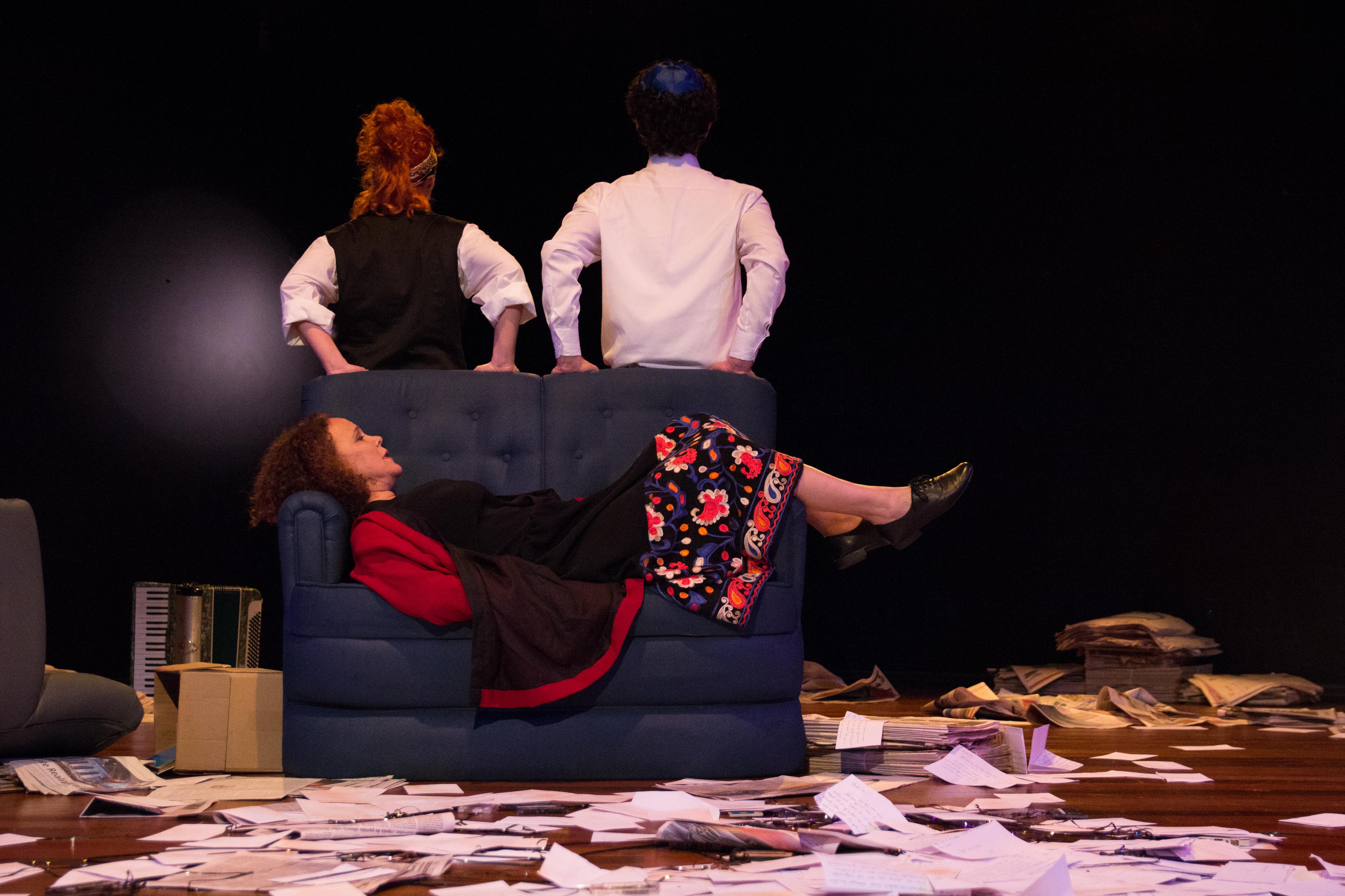 das Stück 2012 am Deutschen Theater Berlin uraufgeführt wurde, spielten die Schauspielerinnen in einem mit Möbeln voll gepackten Wohnzimmer. Mirah Laline, eine in